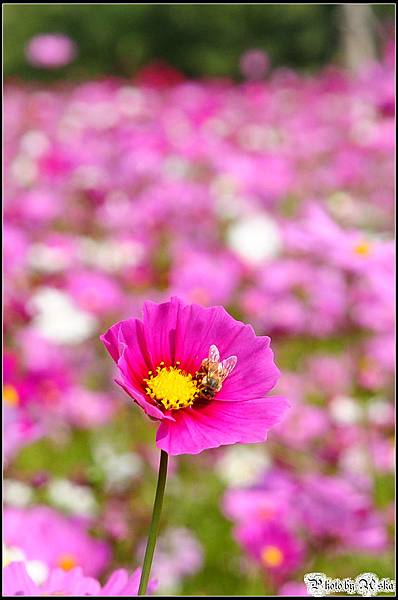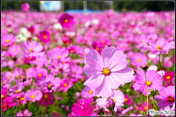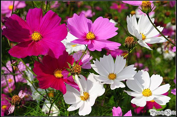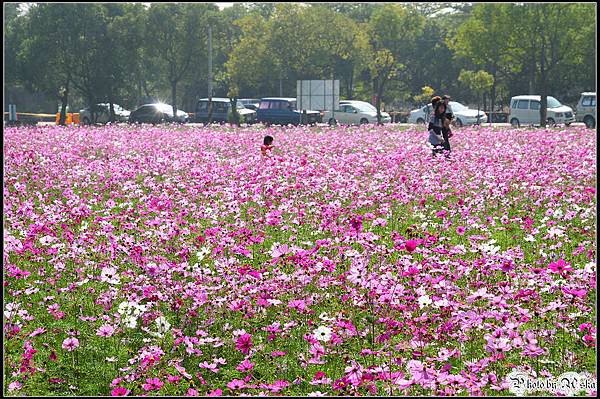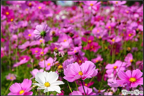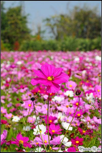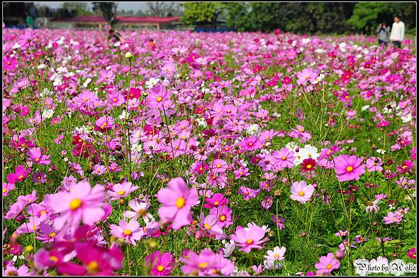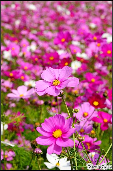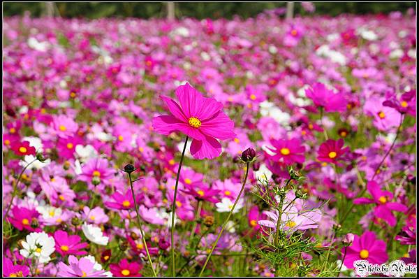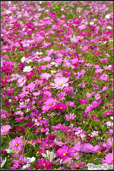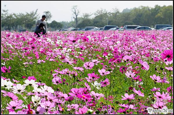 還記得我不久前才po過觀音鄉的波斯菊花海嗎?那時候對於一大片的波斯菊感到十分震撼,沒想到在雲林古坑我見識到什麼才叫做真正的"花海"!今年的年假長達九天,但是台北市卻從小年夜一路下雨下到大年初三,待在家裡不止快發霉連香菇都要長出來了吧!趁著大年初四雨歇決定往南部跑,曬曬久違的陽光去去霉氣。目的地其實是劍湖山世界,沒想到就在快到劍湖山之前的路邊,望見了這一大片波斯菊花田,忍不住就衝下來拍照了ㄚ。