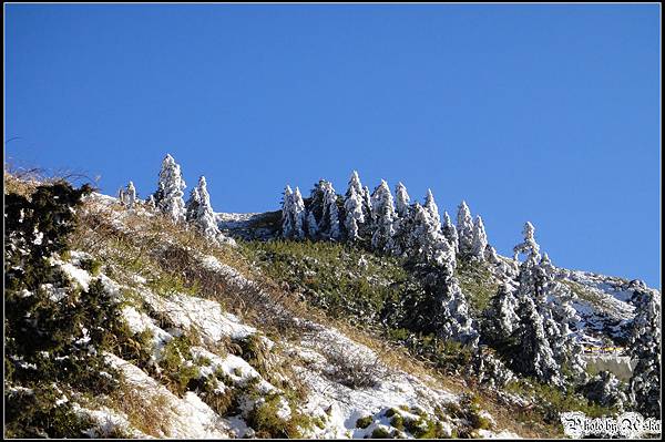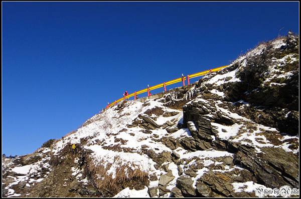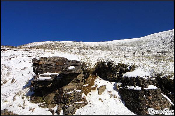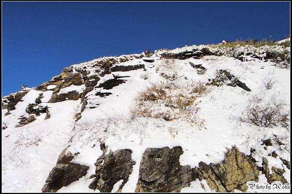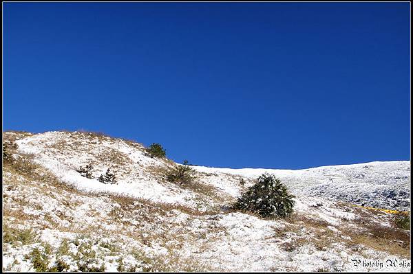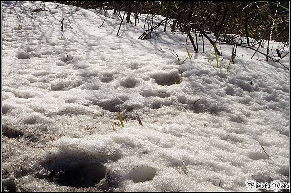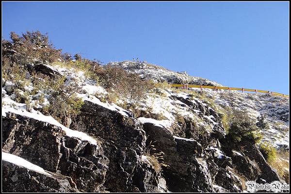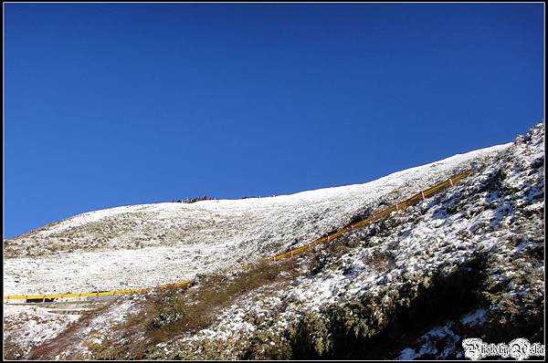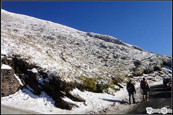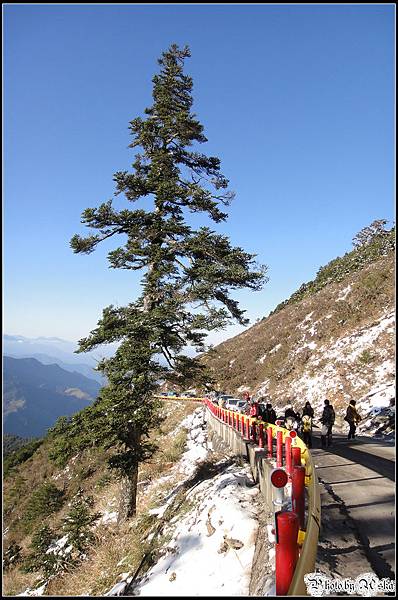 還記得前一陣子一直來襲的寒流嗎?光是第一波的寒流就讓合歡山積雪超過5cm,緊接著第二波的寒流更是讓合歡山積雪超過了10幾公分深。跟去年的雪況實在是差太多,去年我還可以一路不用上雪鍊開上武嶺,然後僅在停車場和武嶺牌附近有些積雪。要看到大片的雪要登上合歡山才行。今年光是從昆陽停車場前就可以在路邊看到不少積雪,更不用說從昆陽要上武嶺就管制一定要上雪鍊。車潮也是從清境農場過來沒多久就塞住了!我只能勉為其難的將車子停在昆陽停車場旁的空地處,徒步欣賞這雪景。