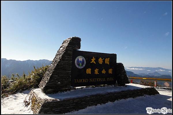 昆陽停車場旁的太魯閣國家公園碑,注意到地上滿滿的積雪了嗎?